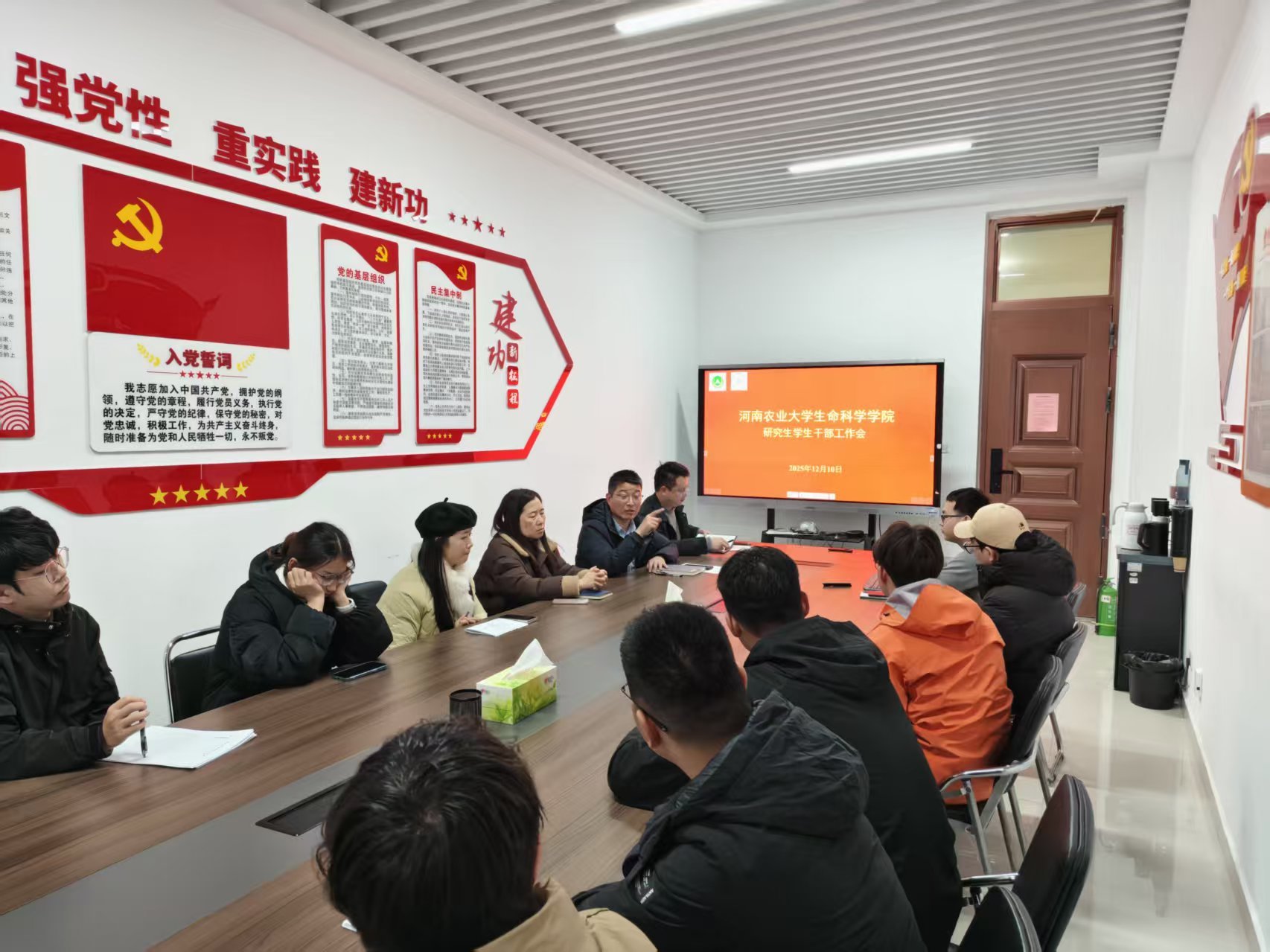 本网讯(通讯员 程高翔)为进一步强化研究生日常管理工作,压实研究生干部责任,保障研究生学习生活秩序稳定,12月10日,生命科学院于龙子湖校区力行楼243会议室召开2025年研究生学生干部工作会。院党委副书记张世昌出席会议,辅导员郑真真、苏增平及全体研究生干部参加会议。
