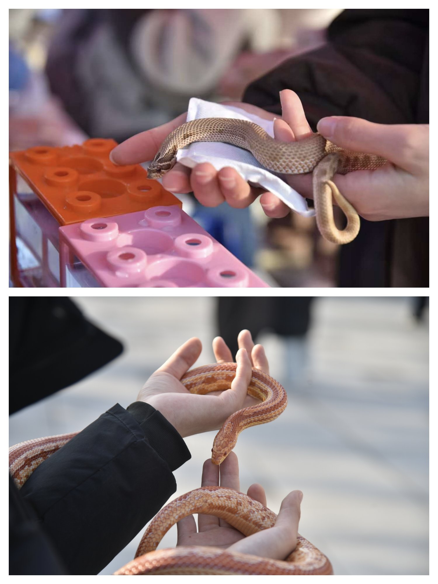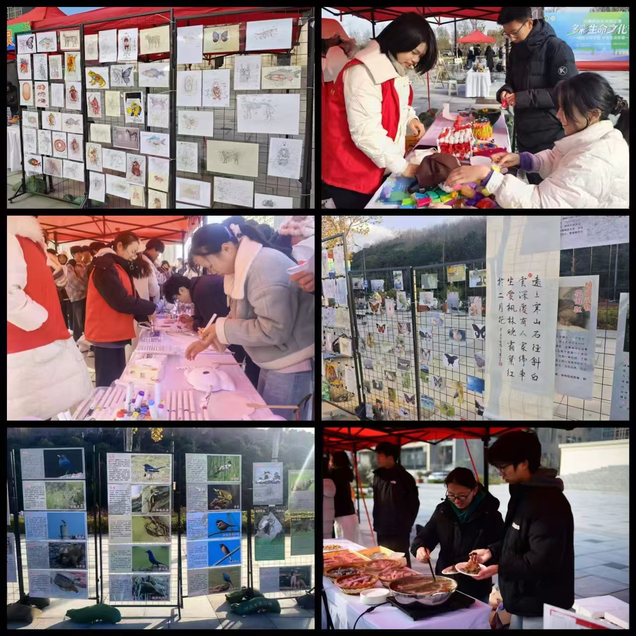 “生命之趣”区域堪称现场的“人气聚集地”。趣味知识问答、生物猜谜等互动游戏刚一开启,便吸引了众多同学踊跃参与,大家在欢笑与角逐中轻松巩固了生物知识。由学院“生命之光”社团带来的活体爬行动物展示更是成为焦点,豹纹守宫、玉米蛇、墨西哥黑王蛇、白化束带蛇、猪鼻蛇、加州王蛇、白化德州鼠蛇等爬行动物纷纷亮相,让同学们得以近距离观察这些特殊生命的形态与习性,感受爬行动物世界的多样性与奥秘。而学院自主研发的特色食品摊位前也排起了长队,同学们通过参与游戏答题集卡,即可兑换品尝舌尖美味。这种“学中有乐、乐中获知”的形式,让体验感与参与感双双拉满,现场氛围热闹非凡。最后来到“生命之映”展区,一幅幅动物摄影作品格外引人注目,镜头捕捉下的自然世界里,动物们的灵动瞬间被永久定格,每一张都传递着生命的鲜活与美好。一旁的科普展板则系统介绍了动物分类、生活习性等专业知识,条理清晰的内容为同学们打开了系统认知生物世界的窗口,助力大家构建起更全面的动物知识体系。